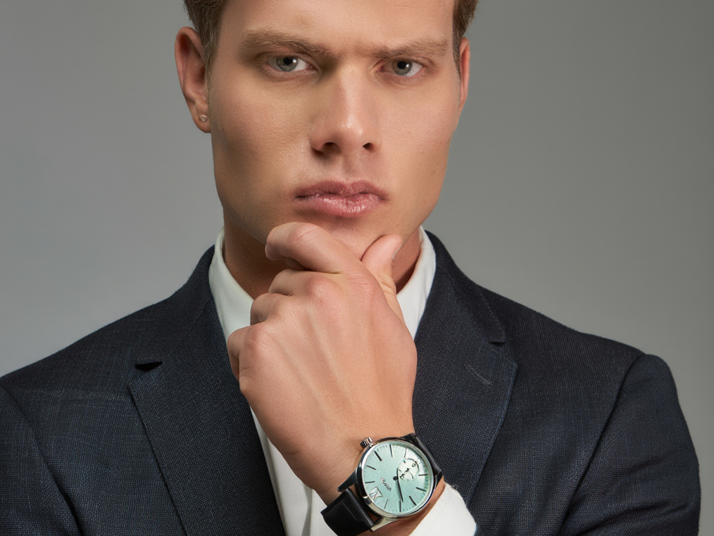 Make a statement with the POEGGAR Men's Luxury Watch, expertly crafted to combine elegance and functionality. The 44mm stainless steel case features a stunning green dial with chronograph sub-dials, adding a touch of sophistication and modern style. The watch is complemented by a luxurious tan leather strap, providing comfort and a classic look suitable for all occasions.